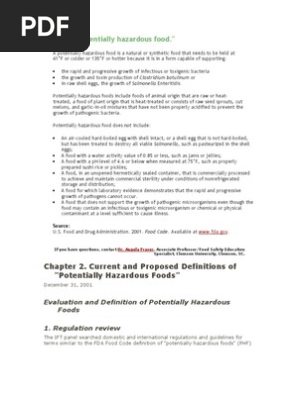 Evaluation And Definition Of Potentially Hazardous Foods Request Pdf